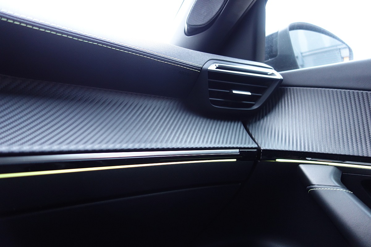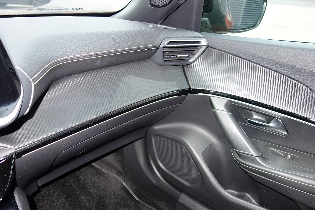 • Armaturenbrett Slush mit Dekor in Carbonoptik und Ziernähte in Adamite Grün,