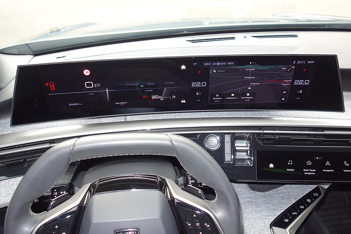 - Peugeot i-Cockpit Panoramic mit gebogenem und Schwebendem 21-Zoll-HD-Bildschirm